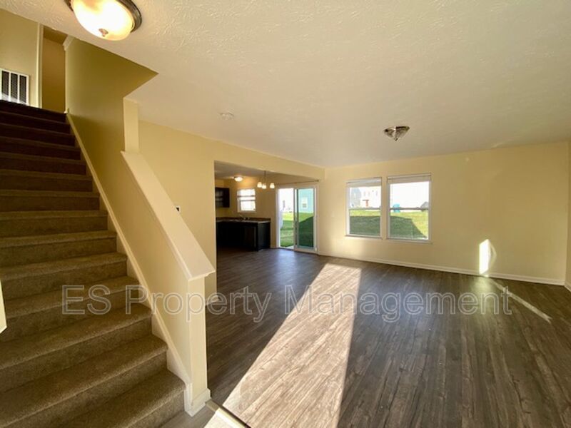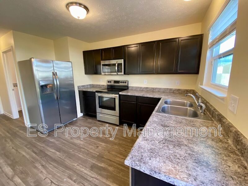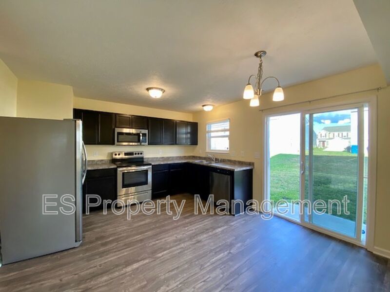 Step inside to find durable vinyl plank flooring throughout the main level. The spacious open-concept kitchen is a true highlight, featuring sleek stainless steel appliances, elegant espresso-colored cabinetry, and direct access to the backyard through sliding glass doors—perfect for outdoor entertaining year-round!