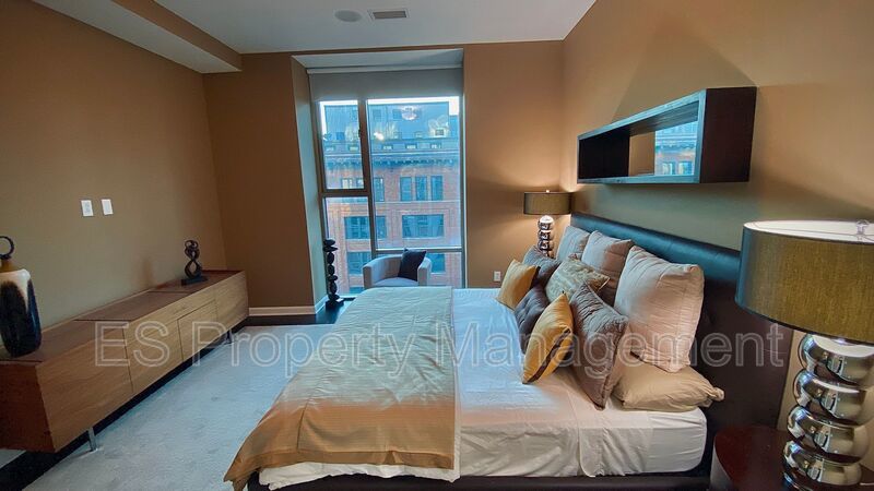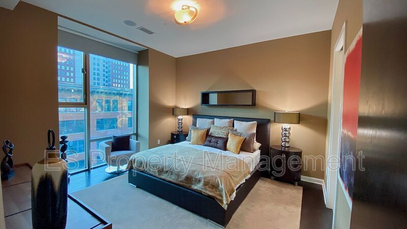 This Breathtaking 2 Bedroom, 2 Bathroom Luxury Condo with an amazing View!!! The security of a private elevator will take you up to your home. Gorgeous Mid Century Modern Two bedroom, 2 luxurious bathroom condo showcasing high ceilings, beautiful finishes and European cabinetry. Available FULLY FURNISHED!!! Amazing City views from floor to ceiling windows are a backdrop! It's perfect for those seeking an upscale urban lifestyle in Indianapolis. Includes water, sewer, a wonderfully equipped fitness center, assigned garage parking space, bike closet, and additional storage space in the building.