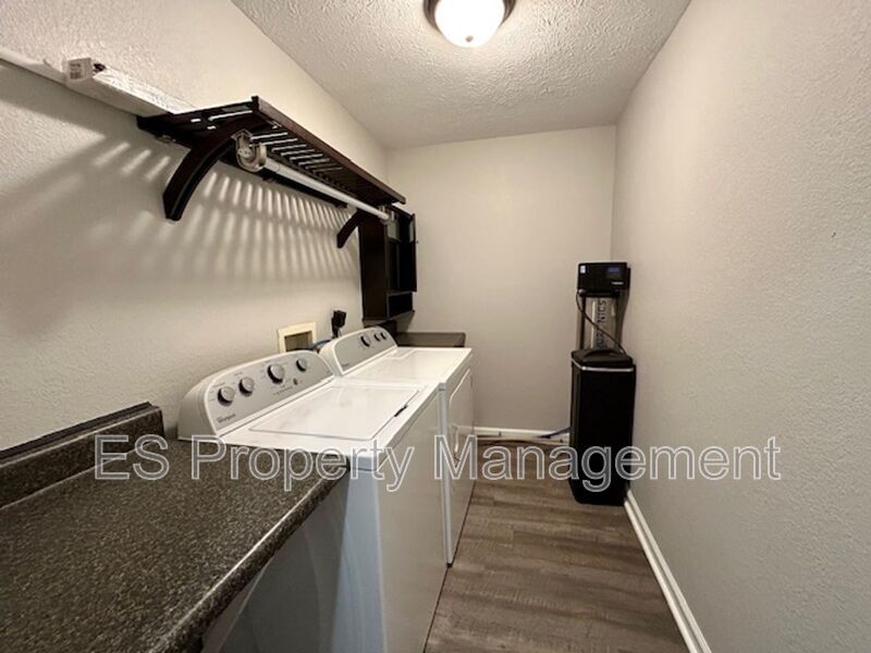 The kitchen features stainless steel appliances, ample cabinet storage, and a practical layout that makes everyday cooking easy and enjoyable. A dedicated laundry area with a washer and dryer included adds convenience, while the water softener system enhances comfort and efficiency.